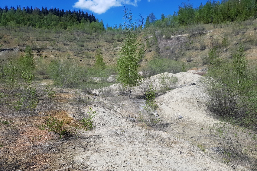 Die aufgelassene Tongrube Arnach im württembergischen Allgäu ist Lebensraum der beiden Sandlaufkäferarten C. sylvicola und C. hybrida.