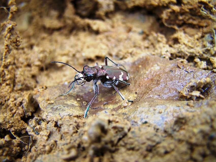 Berg-Sandlaufkäfer (Cicindela sylvicola) am Ufer eines Kleingewässers im Albvorland (Dettenhausen), Juni 2008.