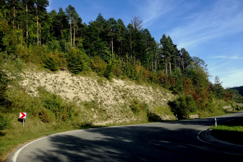 Abbruchkante an einem Steinbruch im Albvorland (Ammerbuch-Entringen), hier lebt eine kleine Population des Berg-Sandlaufkäfers.