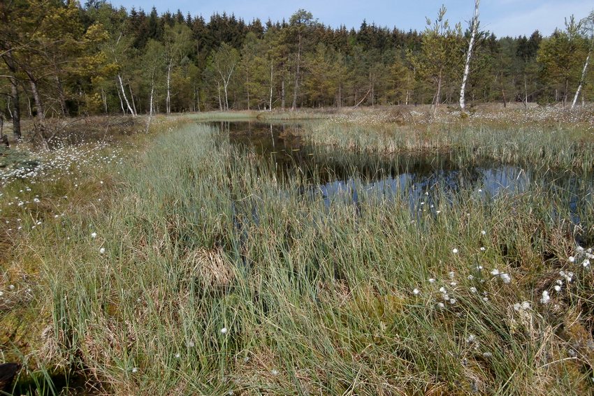 Reproduktionsgewässer von C. lunulatum im nördlichen Oberschwaben; ein größeres Torfstichgewässer in einem Zwischenmoorkomplex.