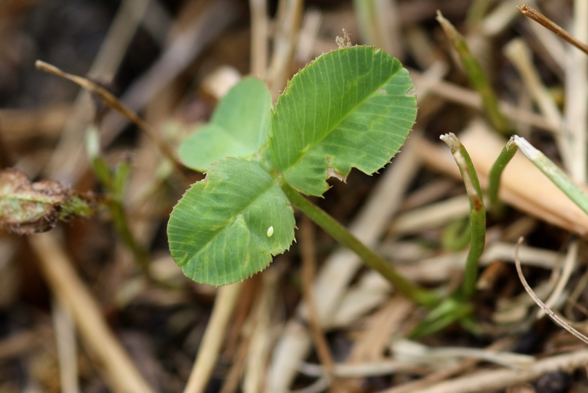 Weiteres Ei des Weißklee-Gelblings an Esparsette auf einem Halbtrockenrasen in den Oberen Gäuen (Schafhausen), September 2018.
