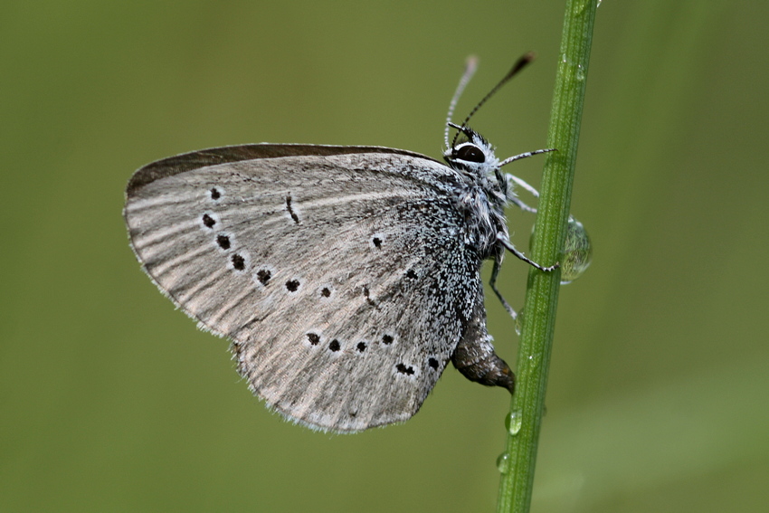 Bestimmung: Kleinster einheimischer Bläuling, daher aufgrund der geringen Größe meist schon auffallend. Einzige Verwechslungsart ist der Rotklee-Bläuling (Cyaniris semiargus), der allerdings deutlich größer ist, eine andere Anordnung der Flecken auf den Flügelunterseiten und einen meist stärker ausgeprägten bläulich-grünen Schimmer an der Basis der Flügelunterseiten besitzt.