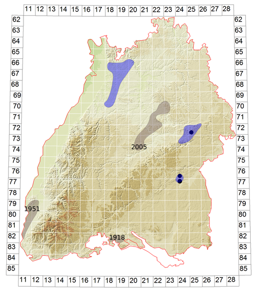 Schematische Verbreitung von C. germanica in Baden-Württemberg: