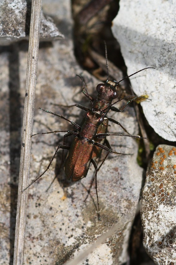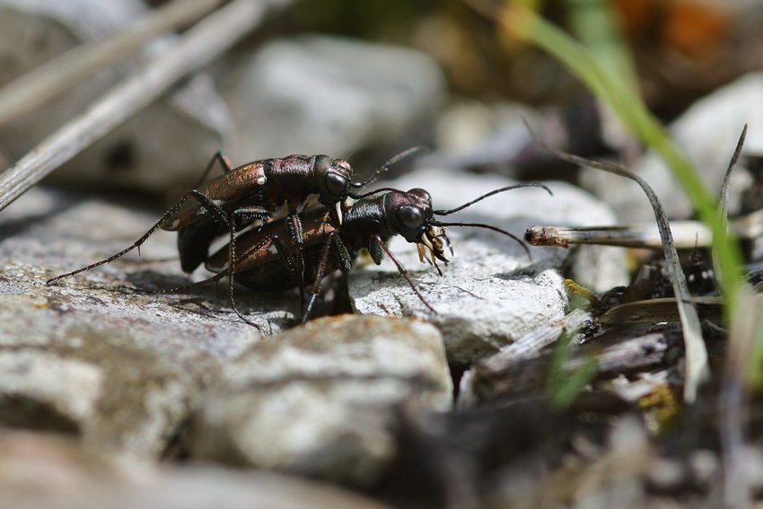Kopula des Deutschen Sandlaufkäfers (Cylindera germanica) am Albtrauf, Juli 2012.
