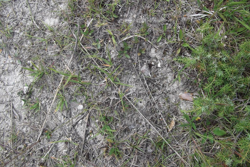 Mikrostrukturelemente des Habitats des Deutschen Sandlaufkäfers: Schütterer Boden und lückige Vegetation, südlicher Albtrauf (Ehingen).