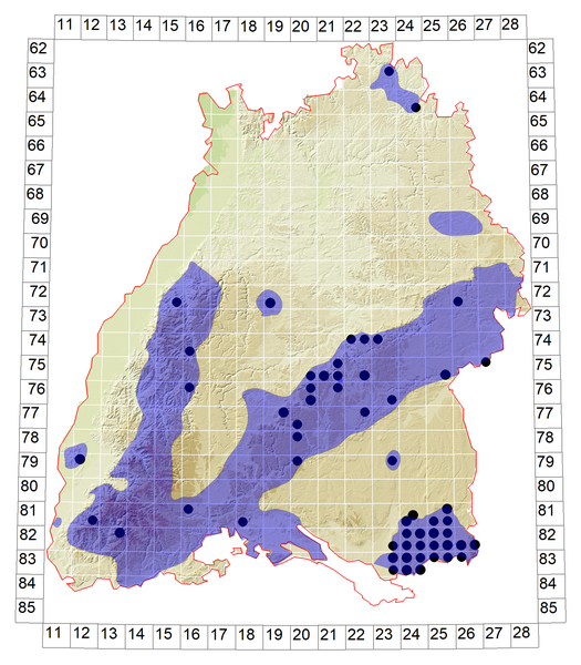 Schematische Verbreitung von D. verrucivorus in Baden-Württemberg:
