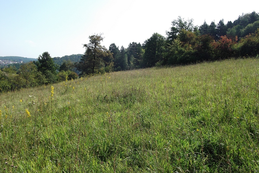 Großflächiger Magerwiesenkomplex auf der Schwäbischen Alb (Öschingen) als Lebensraum einer großen Population des Warzenbeißers.