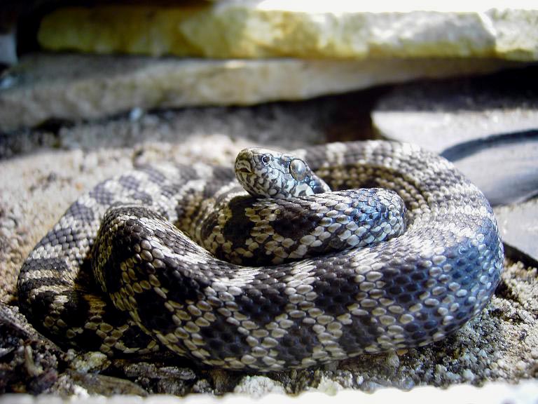 zu beißen versucht. Nach drei Jahren waren die Schlangen komplett umgefärbt und