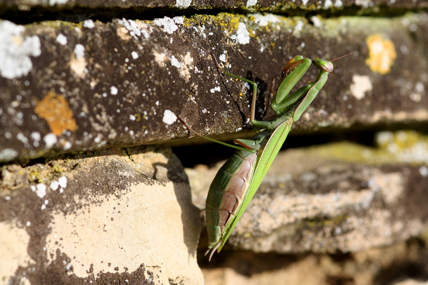 Auch dieses Weibchen der Gottesanbeterin (Mantis religiosa) genoss die letzten Oktober-Sonnenstrahlen.