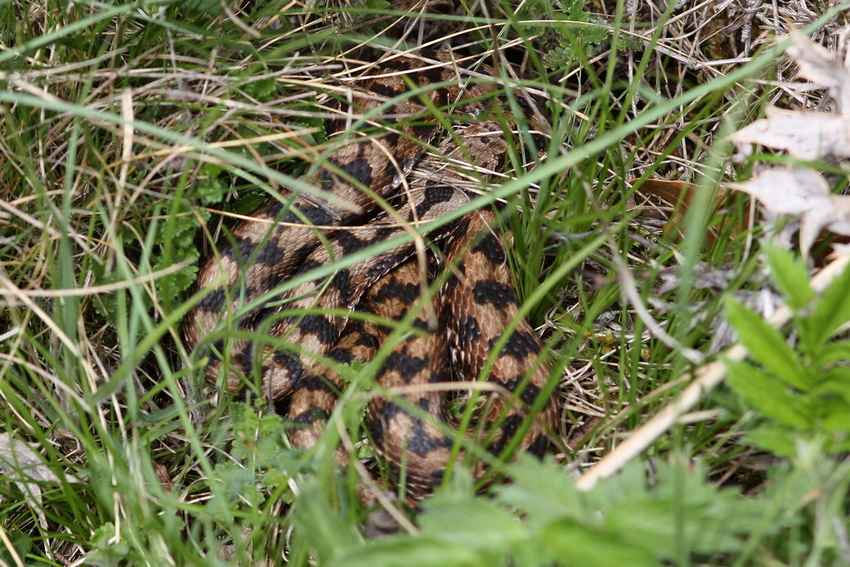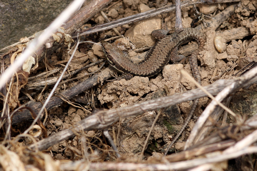 Dieses ausgewachsene Tier sonnte sich in einem Steinriegel; es zeigt die Zeichnung der Nominatform.