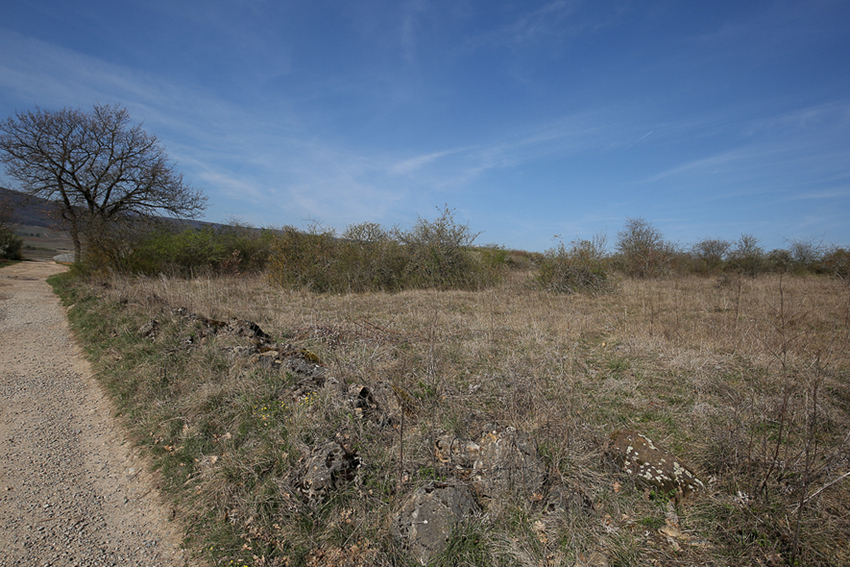 Charakteristischer Ausschnitt des Habitats der Aspisviper (Vipera aspis) am Bollenberg im zeitigen Frühjahr; die Art hält sich bevorzugt entlang der Steinriegel und Gebüschsäume auf.