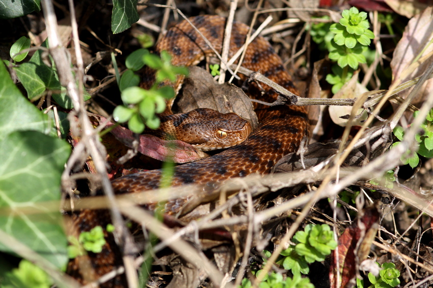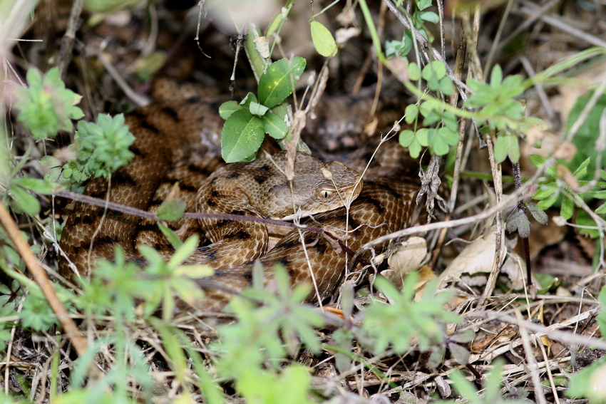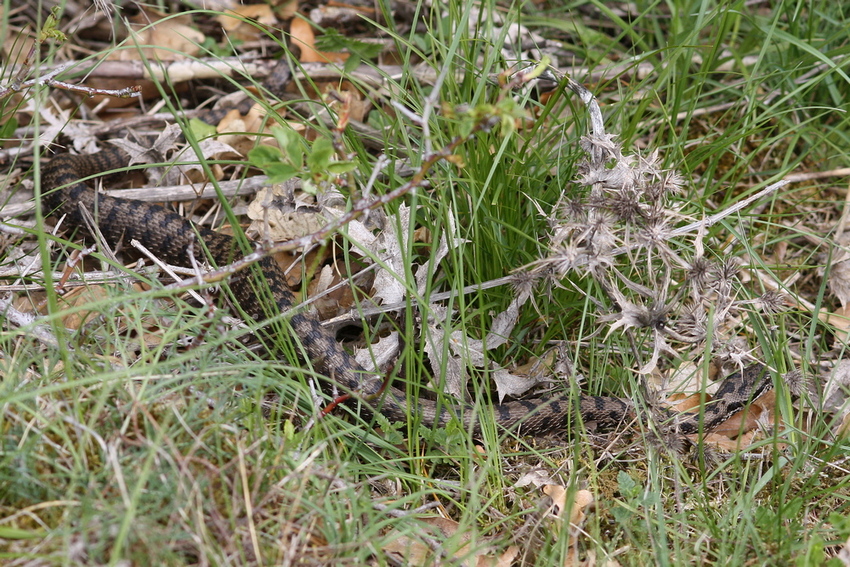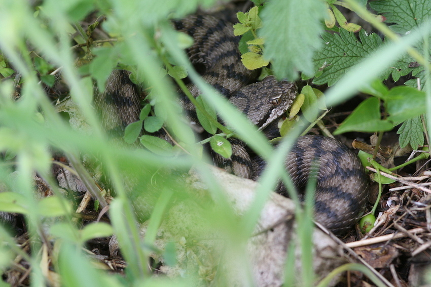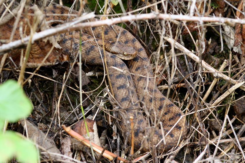 Dieses kräftige Weibchen der Apsisviper sonnte sich in einer Rebböschung unterhalb der Burg.