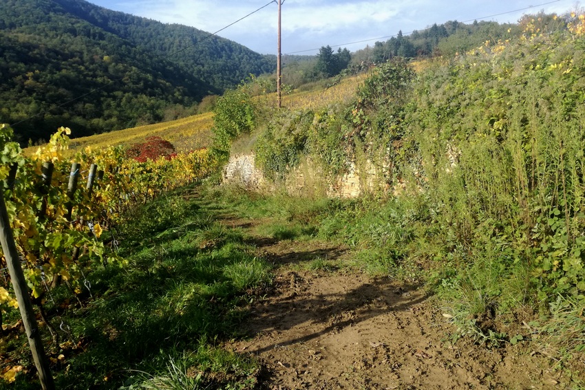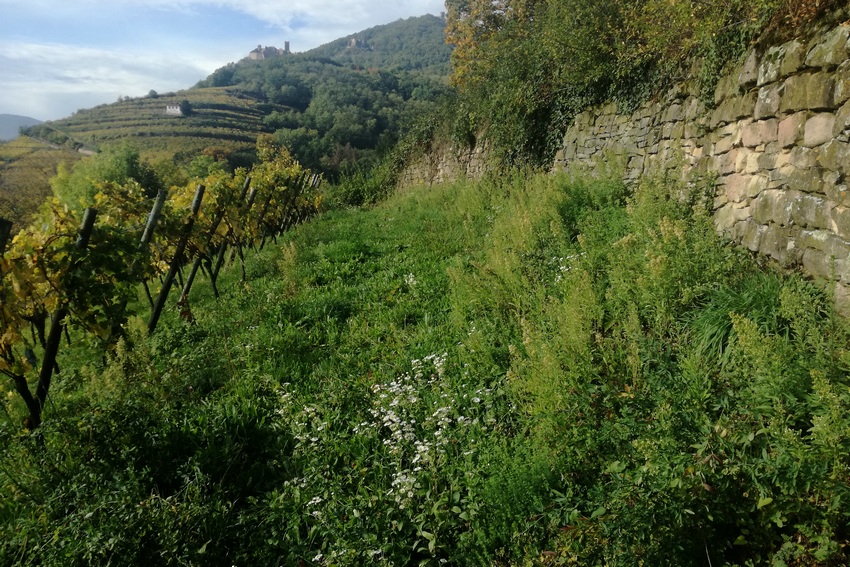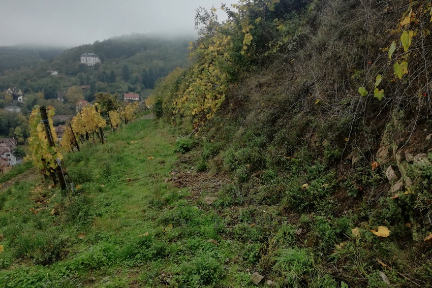 Weiterer Habitatausschnitt aus Ribeauvillé mit den charakteristischen, überwachsenen Weinbergsmauern, die als bevorzugte Aufenthaltsorte der Aspisviper dienen.