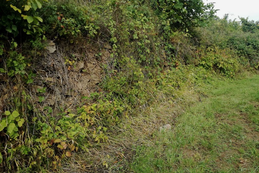 Mit viel Vegetation überwachsene Rebböschung als Fundort des obigen Jungtieres, das sich in dem vegetationsarmen, gut besonnten Bereich aufhielt.