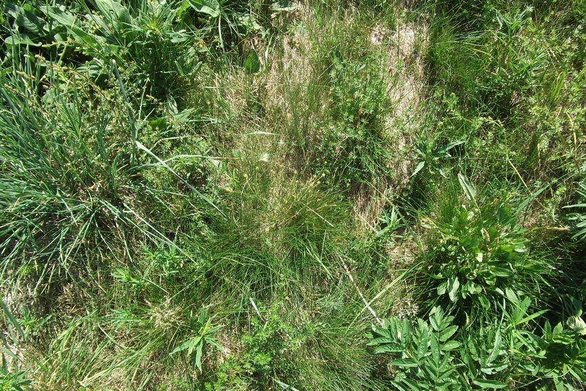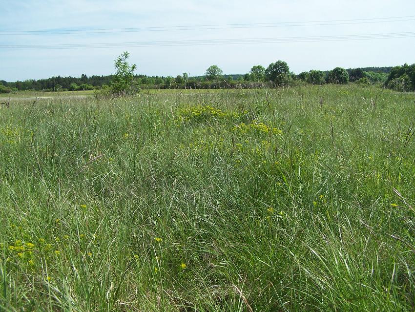 Larvalhabitat-Struktur in der Kiesgrube bei Leutkirch. Gut zu erkennen ist die dicke Streuschicht und die Dominanz von Festuca.