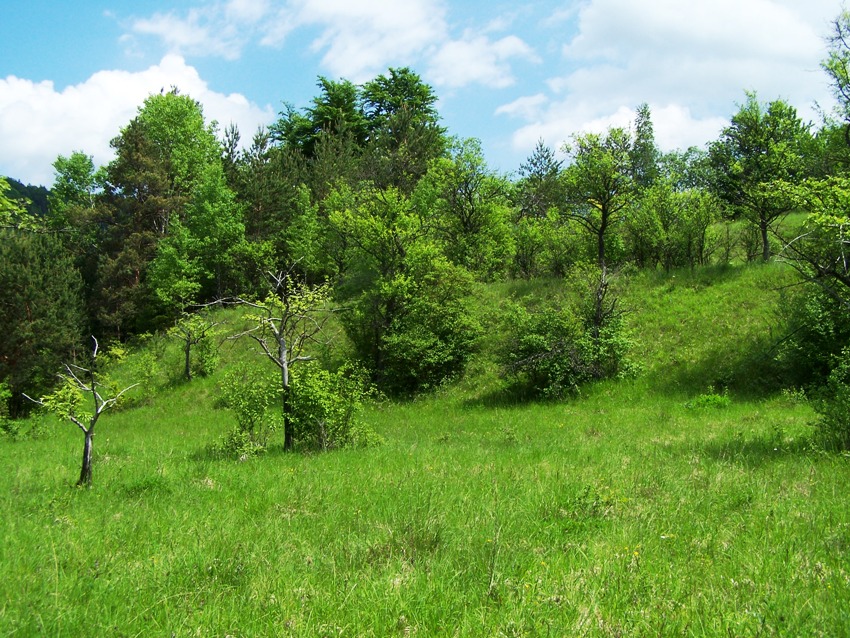 Ehemalige, aktuell brachgefallene Streuobstwiese am Südhang bei Holzgerlingen (Albvorland). Hier konnte ich im Mai 2010 ganze zwei Falter nachweisen. Auf der Alb würden in einem derartigen Habitat sicherlich mehrere Dutzend Falter fliegen.