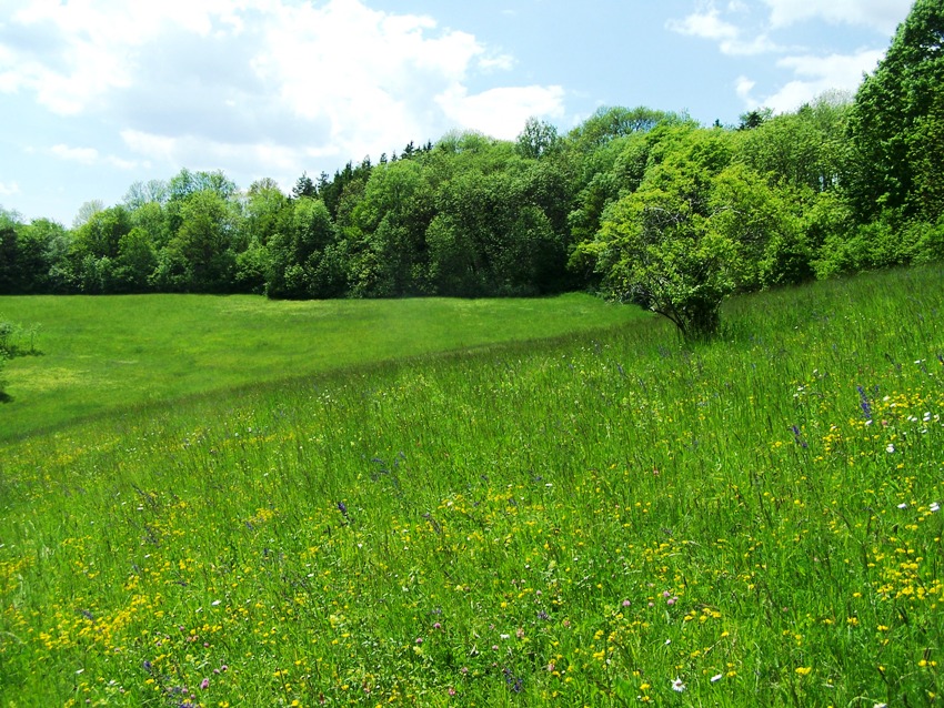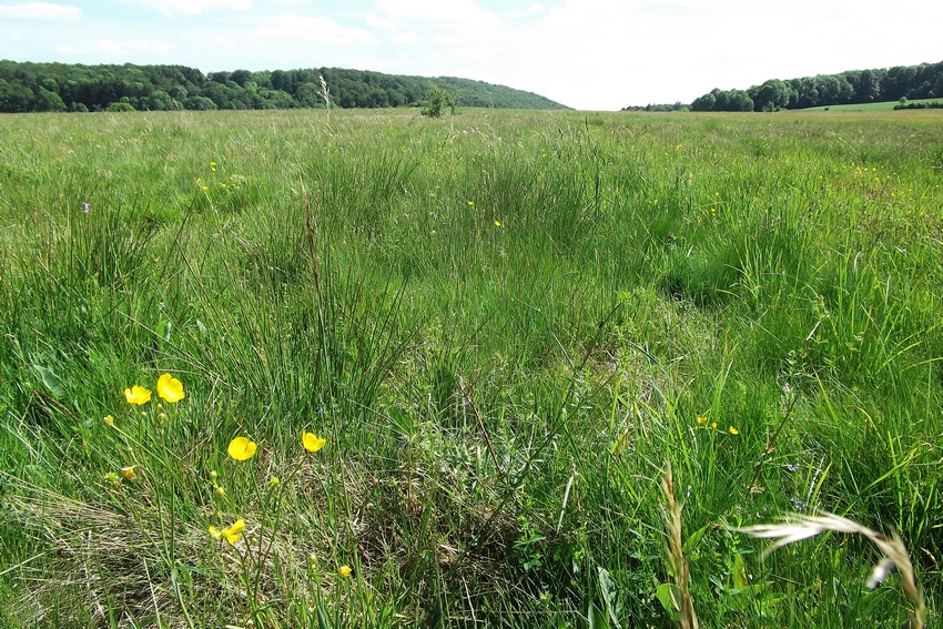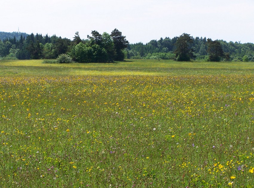 Einschürige Bergwiese auf der Westalb. In den höheren Lagen (Schwäbische Alb, Baaralb, Südschwarzwald) ist E. medusa auch regelmäßig auf diesen mageren Einmähdern anzutreffen.