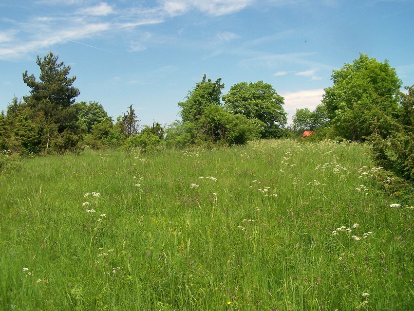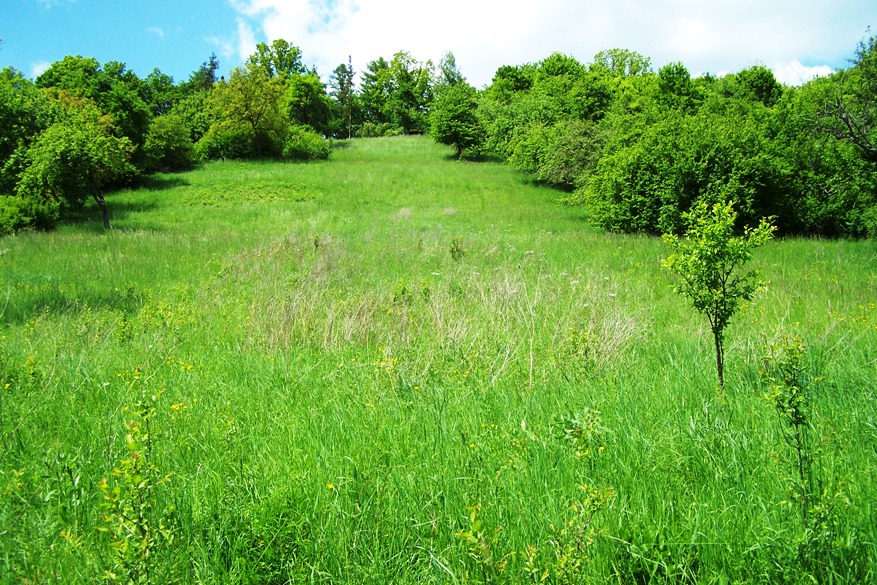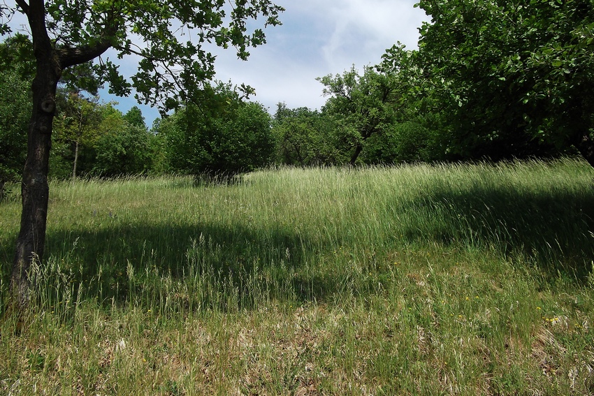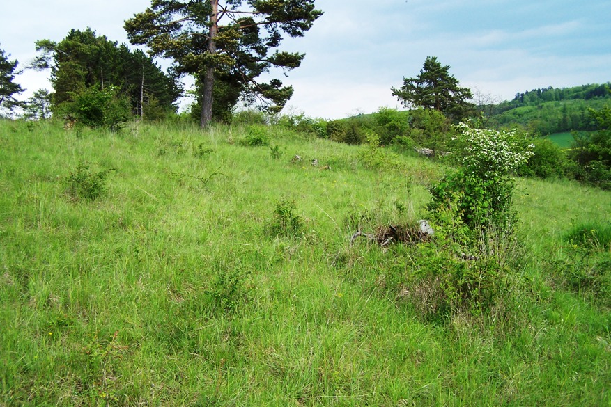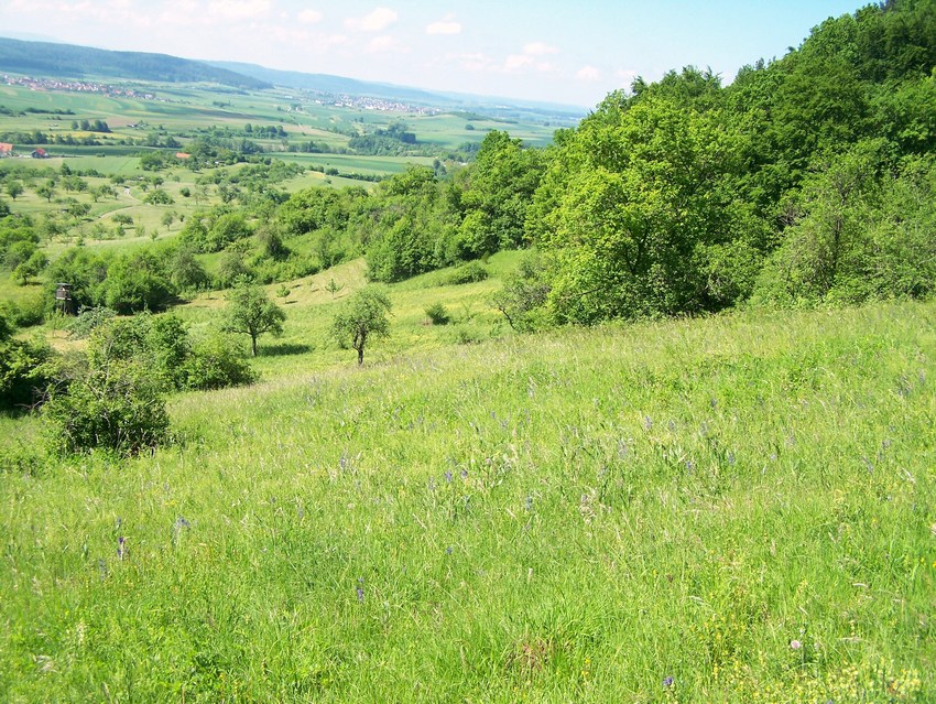 Eines der letzten verbliebenen Habitate von E. medusa am Schönbuch-Südwesthang. Auch hier fliegt die Art auf brachen, ehemals bewirtschafteten Streuobst- und Salbei-Glatthaferwiesen.