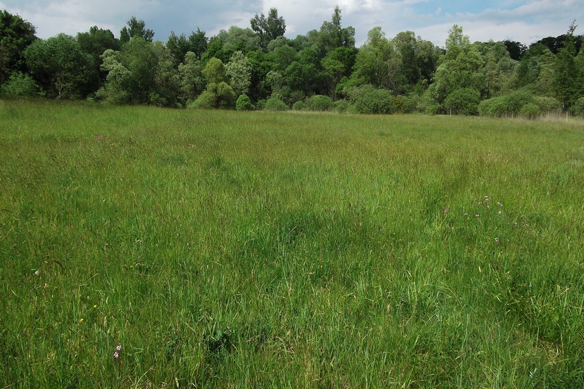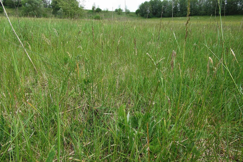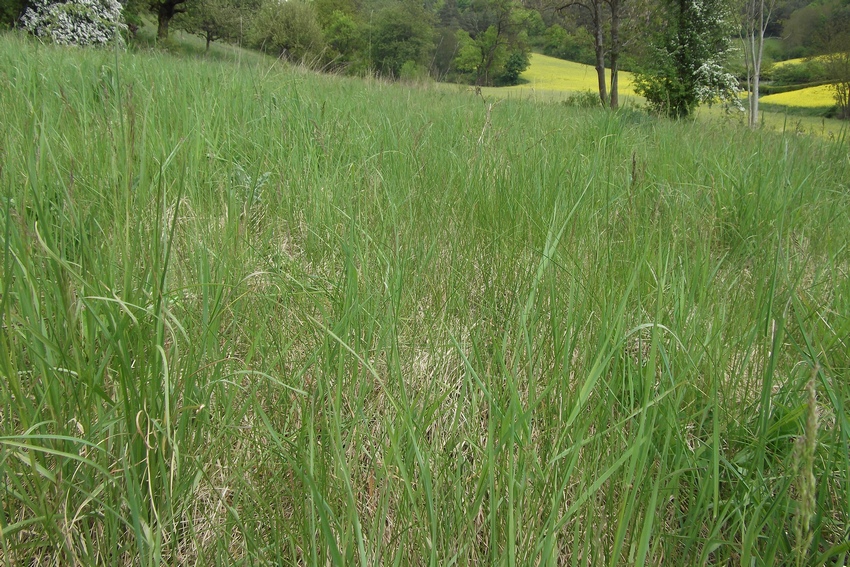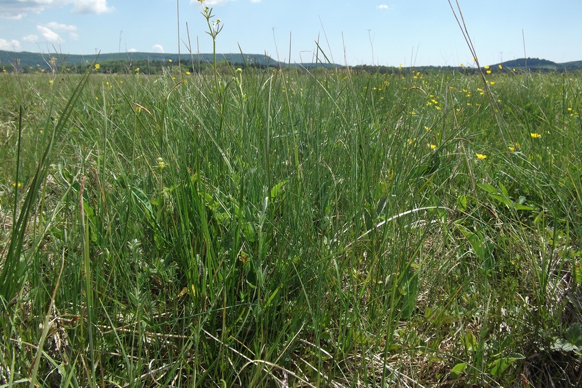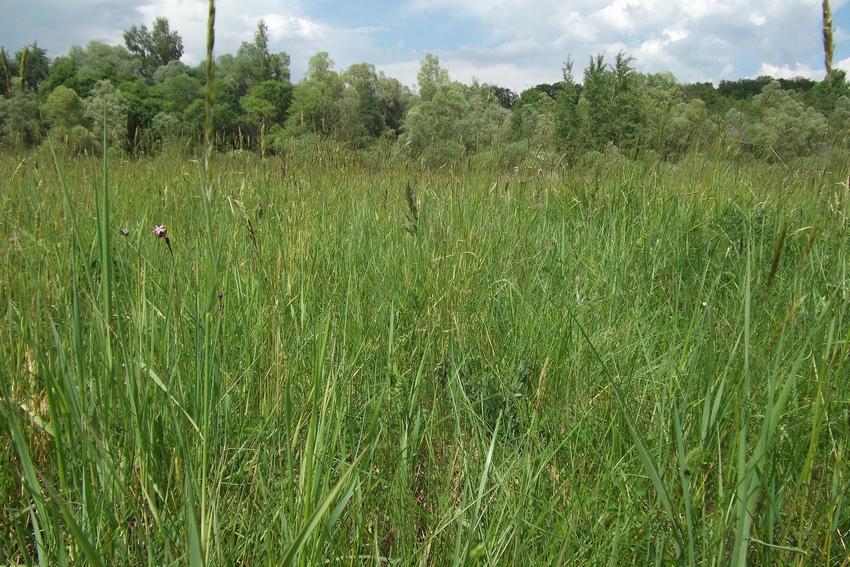 Einblick in die Vegetationsstruktur des NSG Hauwiesen: Festuca ist in dieser mageren Wiese gut vertreten. Wie viele andere extensiv genutzte Feucht- und Streuwiesen ist auch diese recht streureich und muss daher für E. medusa als recht geeignet gelten.
