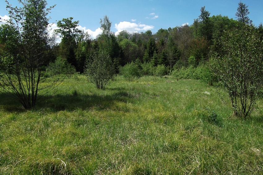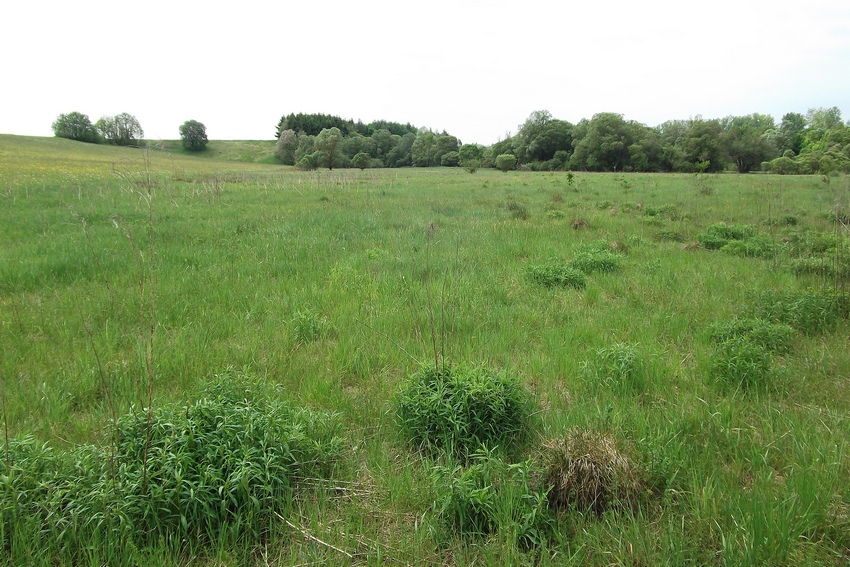 Weiterer Einblick in das Larvalhabitat von E. medusa im Feuchtlebensraum. Hier ist eine Feuchtbrache im Baar-Wutach-Gebiet Habitat von E. medusa zusammen mit dem Blauschillernden Feuerfalter (Lycaena helle) und dem Großen Wiesenvögelchen (Coenonympha tullia).