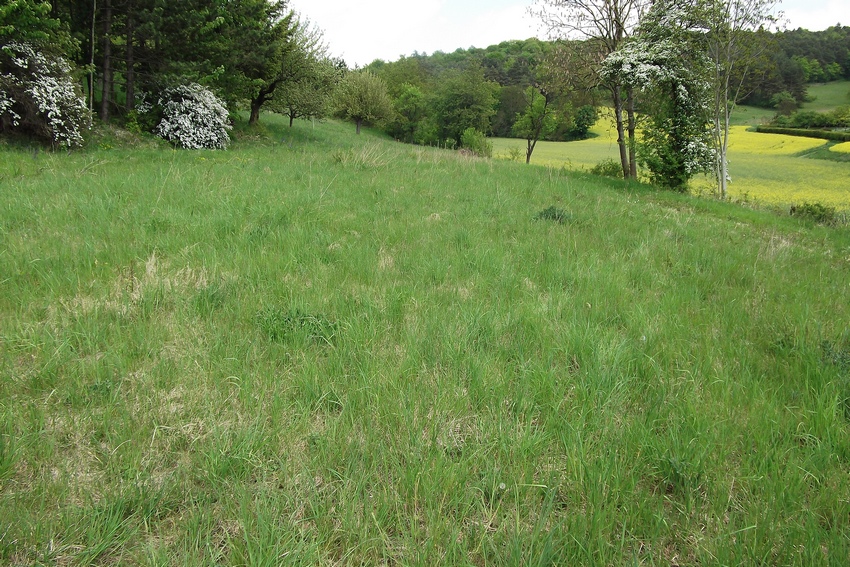 Flugstelle von E. medusa im Tauberland. Auch hier lebt die Art auf eher verfilzten, streureichen Magerrasen. In diesem recht warmen Naturraum erreicht die Art ebenfalls nur geringe Individuendichten.