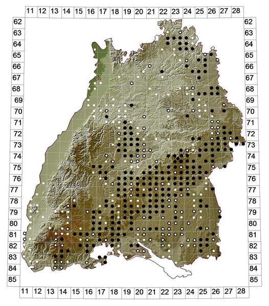 Die heutige Verbreitung von E. medusa in Baden-Württemberg konzentriert sich auf die Schwäbische Alb. Diese wird in einem durchgehenden Band von der Ostalb bis hin zur West- und Hegaualb besiedelt. Von der Schwäbischen Alb aus erstrecken sich die Vorkommen über den Südteil der Oberen Gäue und über das Baar-Wutach-Gebiet bis in den Südschwarzwald. Weitere kleine Verbreitungszentren bildeten die Metapopulationen der Oberen Gäue (v. a. Heckengäu) sowie die individuenschwachen Vorkommen im Tauberland und im Westallgäuer Hügelland. Die Vorkommen im Heckengäu sind zwischenzeitlich allerdings fast erloschen. Darüber hinaus kommt E. medusa auch aktuell noch in meist isolierten Restpopulationen in der Kocher-Jagst-Region, in den Keuperwaldbergen, im Schurwald und Welzheimer Wald, im Albvorland, im Kraichgau und im nördlichen Oberschwaben vor. Seit etwa einem Jahrzehnt erloschen sind dagegen die ehemaligen Vorkommen am südlichen Oberrhein und am Bodensee. Die dargestellte Karte kann keinen Anspruch auf Vollständigkeit erheben. Wahrscheinlich existieren sowohl in Oberschwaben als auch in den Keuperwaldbergen, im Südschwarzwald und in der Kocher-Jagst-Region weitere Vorkommen, die im Rahmen der Kartierungen nicht nachgewiesen werden konnten. Lücken in der Verbreitung auf der Schwäbischen Alb sind ebenfalls mit Sicherheit auf Kartierungsdefizite zurück zu führen. Trotzdem erlaubt die Karte eine realistische Bestandseinschätzung von E. medusa in Baden-Württemberg. Die mittlerweile großen Verbreitungslücken etwa in Oberschwaben oder im Albvorland sind keinesfalls auf Kartierungsdefizite zurück zu führen, sondern weisen auf eine rezente Arealregression hin. Dies belegen auch die zahlreichen, erfolglos kontrollierten ehemaligen Fundorte (Schwarze Punkte: Nachweise nach 2000, schwarz gerandete Punkte: Nachweise zwischen 1980 und 2000, weiße Punkte: Nachweise vor 1980).