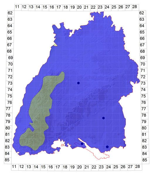 Schematische Verbreitung von E. najas in Baden-Württemberg:
