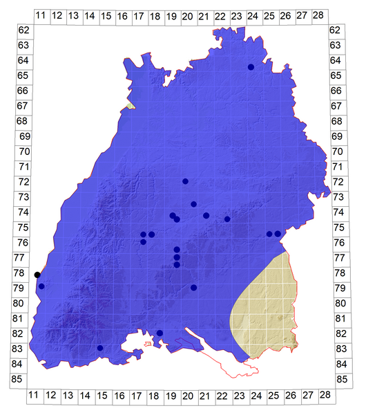 Schematische Verbreitung von E. quadripunctaria in Baden-Württemberg: