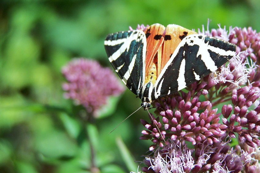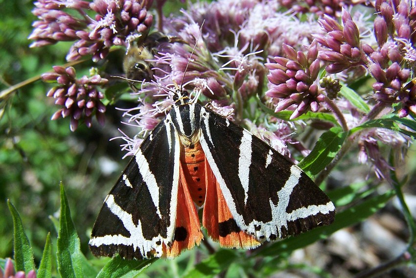 Spanische Fahne (Euplagia quadripunctaria) auf ihrer bevorzugten Nektarpflanze dem Wasserdost im Albvorland (Hirschau), Juli 2010.
