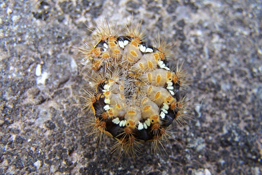 Raupe von E. quadripunctaria in einem Gartengrundstück im Albvorland (Tübingen), Mai 2006.