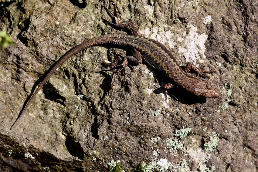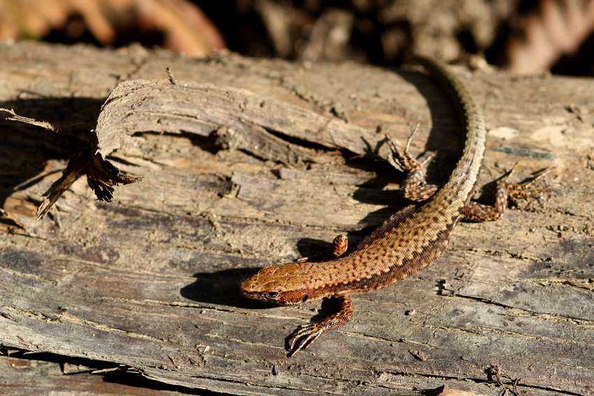 Sich sonnendes Jungtier der Kielschwanz-Felseidechse (Darevskia rudis bischoffi) im Mtirala-Nationalpark.