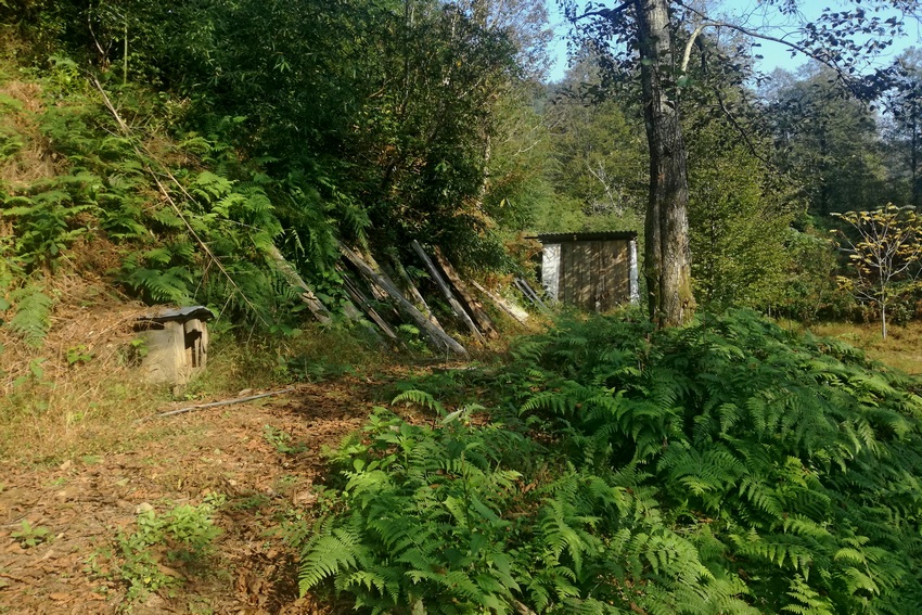 Charakteristisches Habitat der Artwiner Eidechse: Besonnte Böschungen mit Holzpoltern und angrenzende zur Aufstellung von Bienenkästen genutzte Lichtungen.
