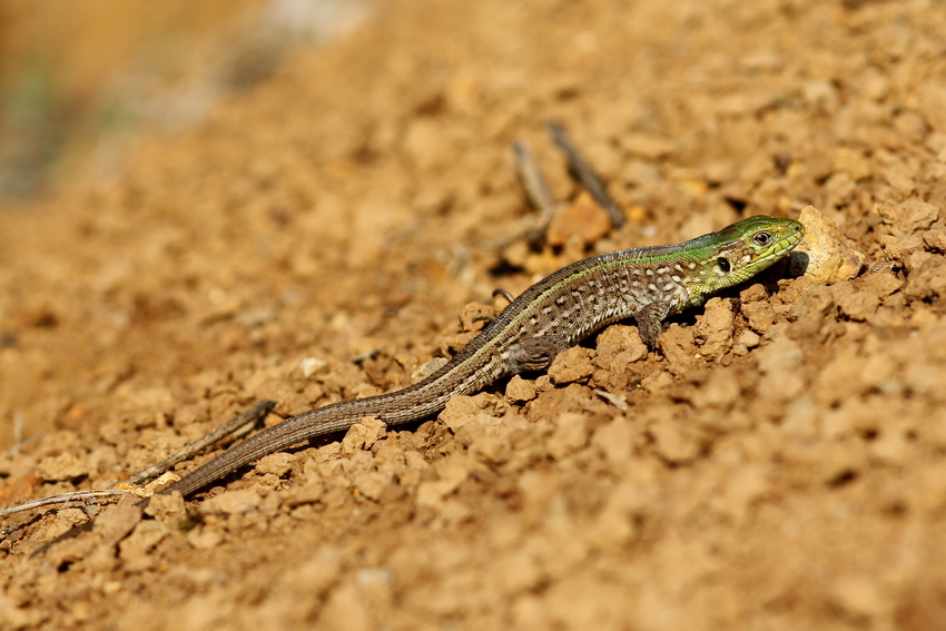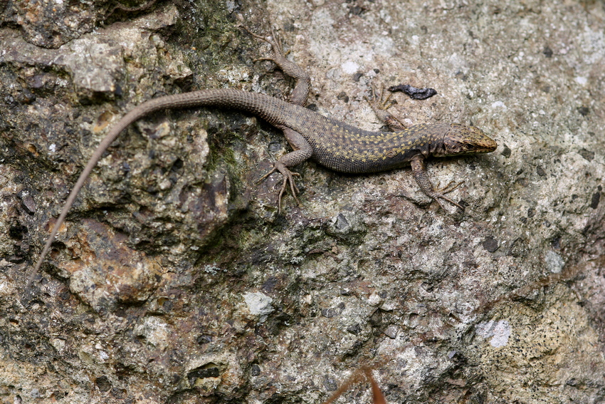 Jungtier der Zauneidechsen-Unterart Lacerta agilis grusinica in oben gezeigtem Habitat.