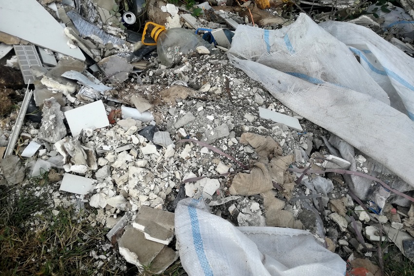 Suchbild eines Jungtieres der Östlichen Riesen-Smaragdeidechse (Lacerta media) im natürlichen Habitat - solche Ansammlungen von Schutt und Müll waren in Georgien allerdings eher selten.