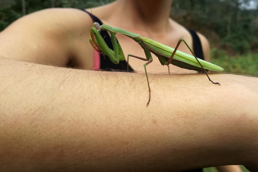Die Gottesanbeterin (Mantis religiosa) - hier auf Ines Arm - sorgte für etwas entomologische Abwechslung.