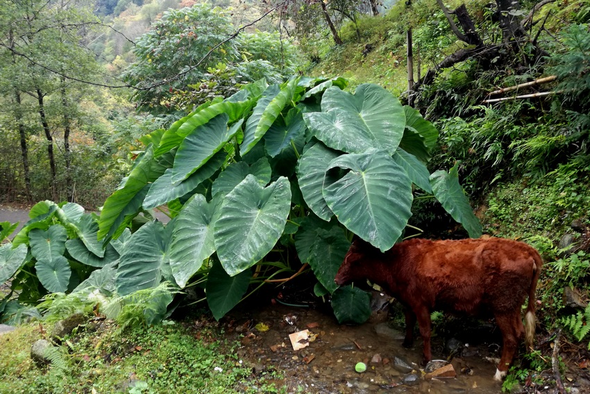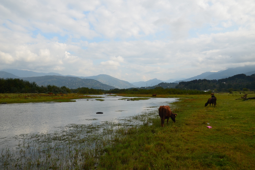 Typisches Bild aus dem Mtirala-Nationalpark: Üppige, grüne Vegetation und ein von Rindern beweideter Quellbach.