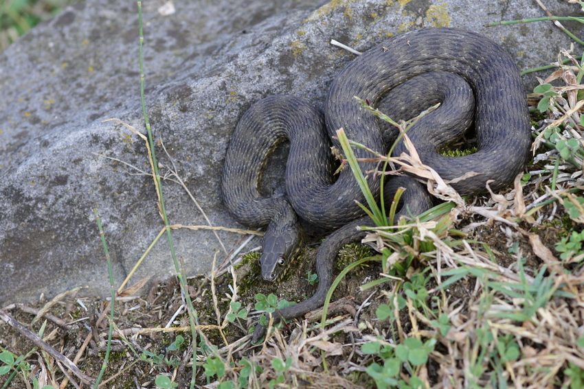 Ausgewachsene Würfelnatter am Ufer des Rioni.
