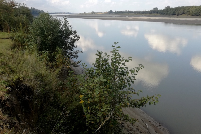 Das Ufer des Rioni, auf der gegenüberliegenden Seite befinden sich ausgedehnte Schlammflächen, die etwa für Limikolen interessant sind.