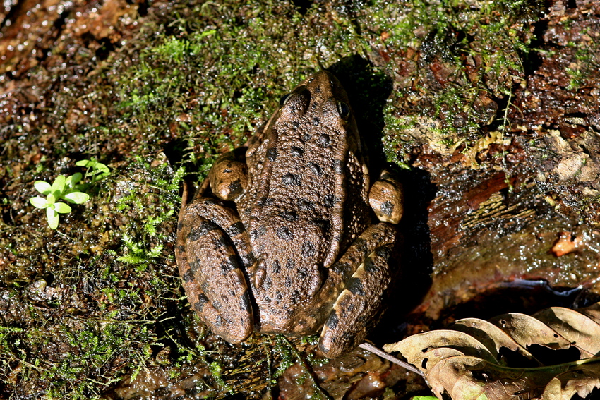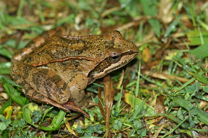 Dieses Exemplar des Kleinasiatischen Braunfroschs ist deutlich dunkler gefärbt und zeigt gut die hohe Variabilität der Art.