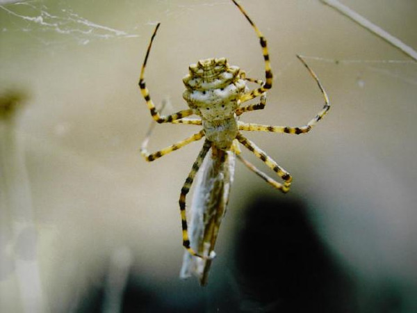 Argiope lobata ist verwandt mit der bei uns heimischen Wespenspinne (Argiope bruennichi).