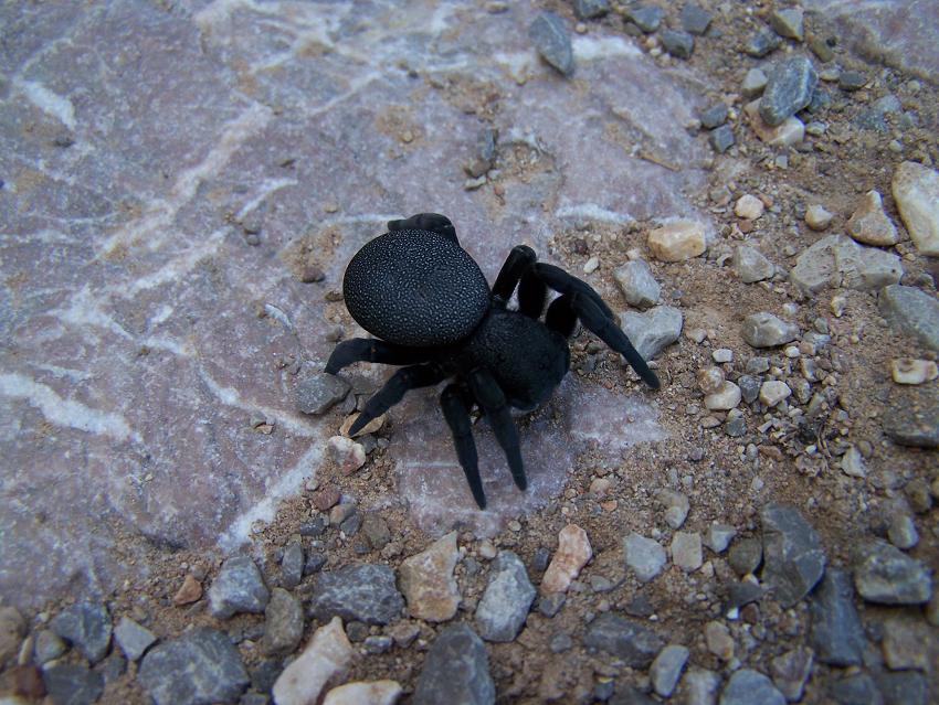 Ein Weibchen der Röhrenspinne Eresus walckenaerius bei den Ruinen von Delphi.