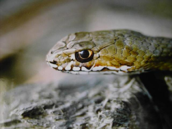 Nochmals die Eidechsennatter, diesmal ein adultes Tier. Heute werden die beiden Arten M. insignitus und M. monspessulanus als zwei eigene Arten betrachtet, während sie früher nur als Unterarten galten.