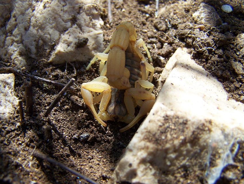 Der häufigste Skorpion auf dem Peloponnes, Mesobuthus gibbosus.