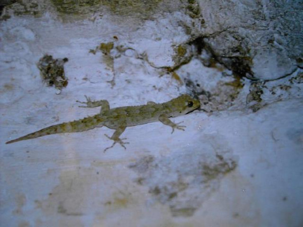 An Hauswänden und Ruinen häufig, Hemidactylus turcicus.