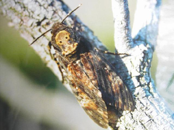 Ein Totenkopfschwärmer (Acherontia atropos), die Art fliegt auch regelmäßig nach Mitteleuropa ein, kann sich hier aber nicht dauerhaft halten.