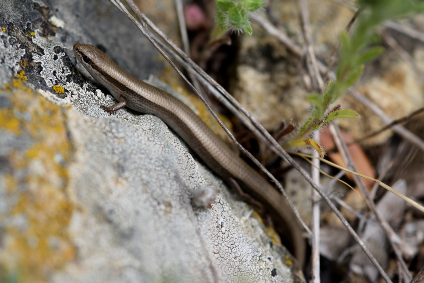 Die Johannisechse (Ablepharus kitaibelli) war nach Regenschauern regelmäßig beim Sonnenbad zu beobachten.