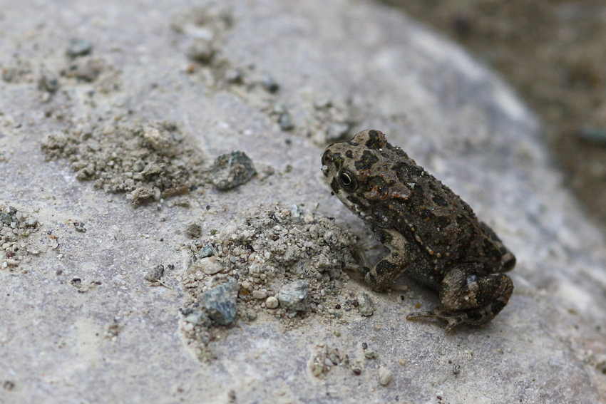 Frisch metamorphosierte Wechselkröte im beweideten Gebiet des Pinios-Deltas.