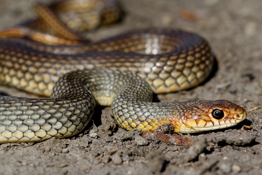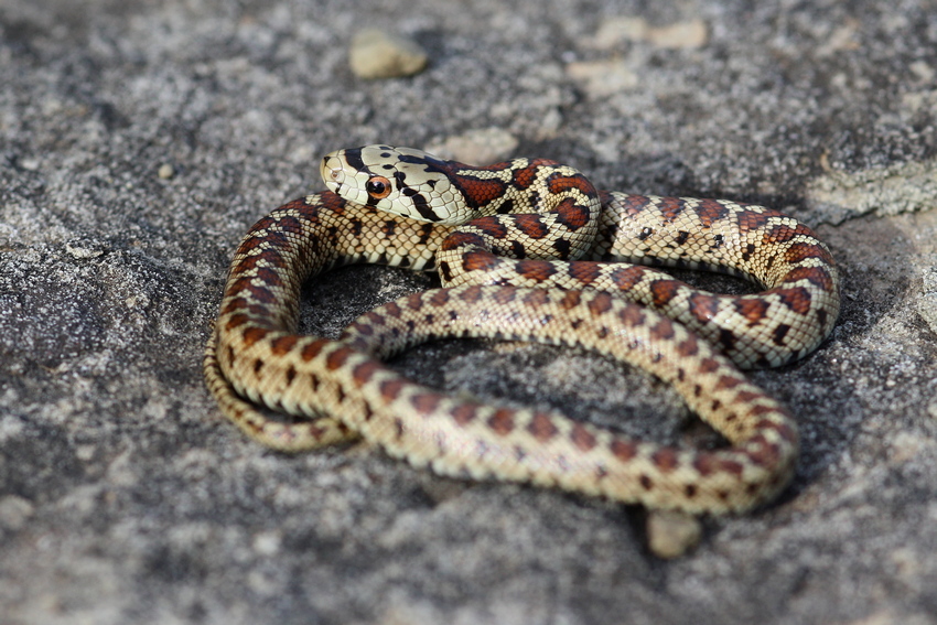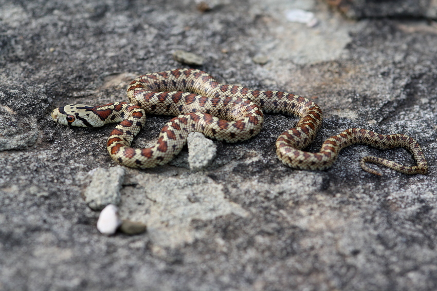 Großes Highlight am späten Nachmittag - eine subadulte Leopardnatter (Zamenis situla).