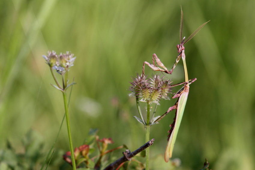 Ein Männchen der Fangschreckenart Empusa pennata auf einem östlich von Loutros gelegenen Hügel.