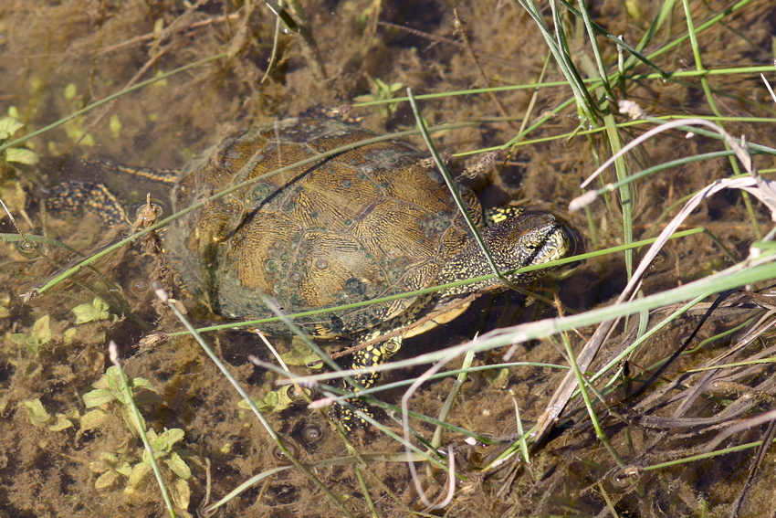 Die Europäische Sumpfschildkröte (Emys orbicularis) konnten wir am Evros seltener beobachten als die Westkaukasische Schildkröte (Mauremys rivulata).